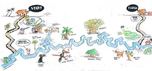 more he is rewarded. For instance, on the 3rd hole, a stream and two